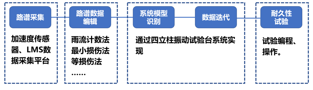 道路模拟试验复现样件道路试验中的载荷需要以下几方面工作:路谱采集及数据编辑、系统模型识别、迭代及耐久性试验。